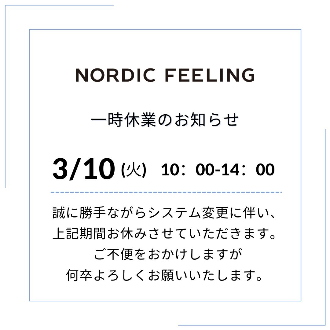 誠に勝手ながらシステム変更に伴い、下記期間中、BERING/ベーリング公式オンラインストアのNORDIC FEELING(ノルディックフィーリング)のWEBサイトを、一時的に閉鎖させて頂きます。