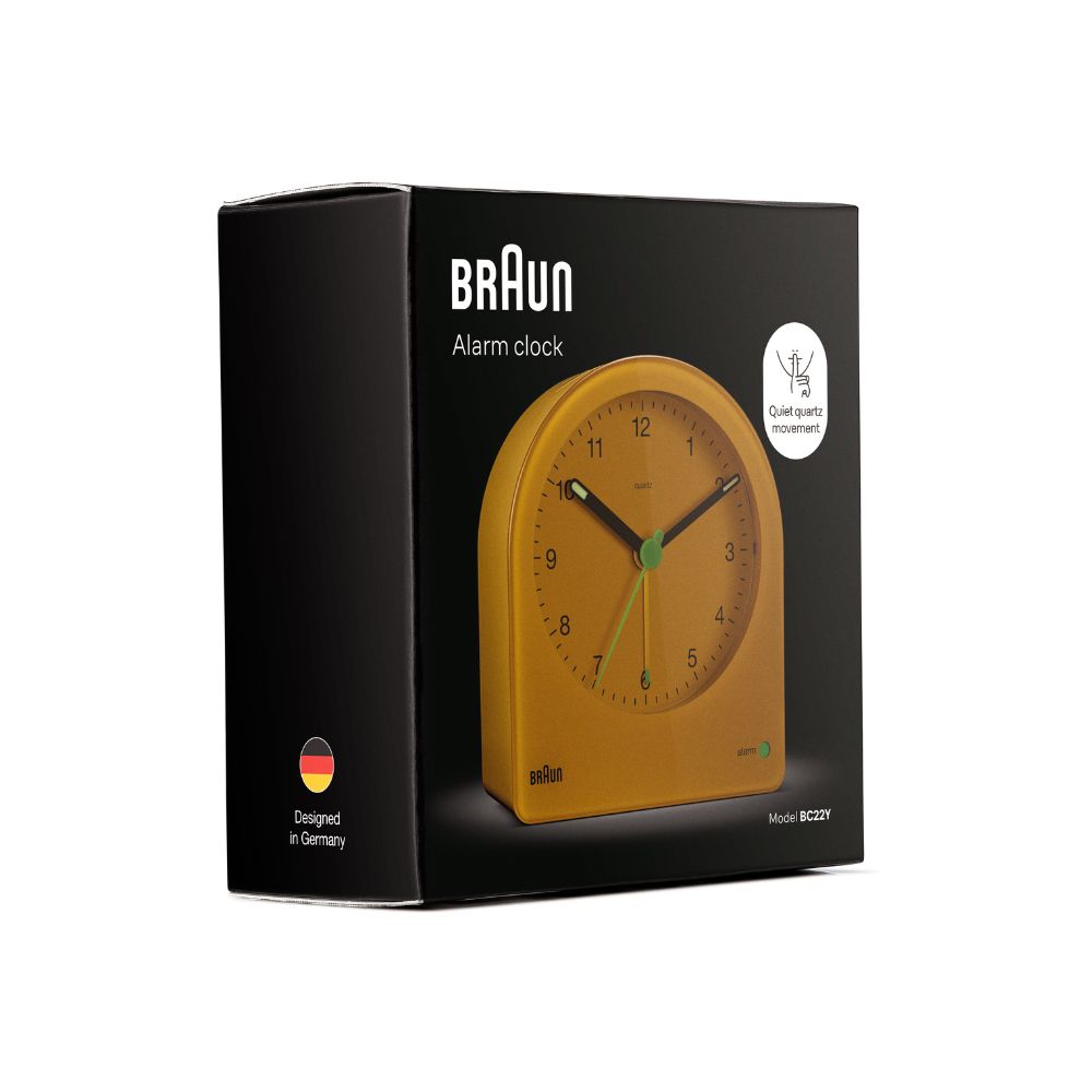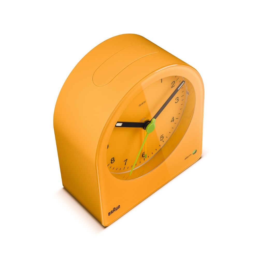 イエローの本体には珍しいグリーンカラーの秒針を採用し、ブランドの象徴的な黄色秒針は、BRAUNのデザインの歴史の象徴です。